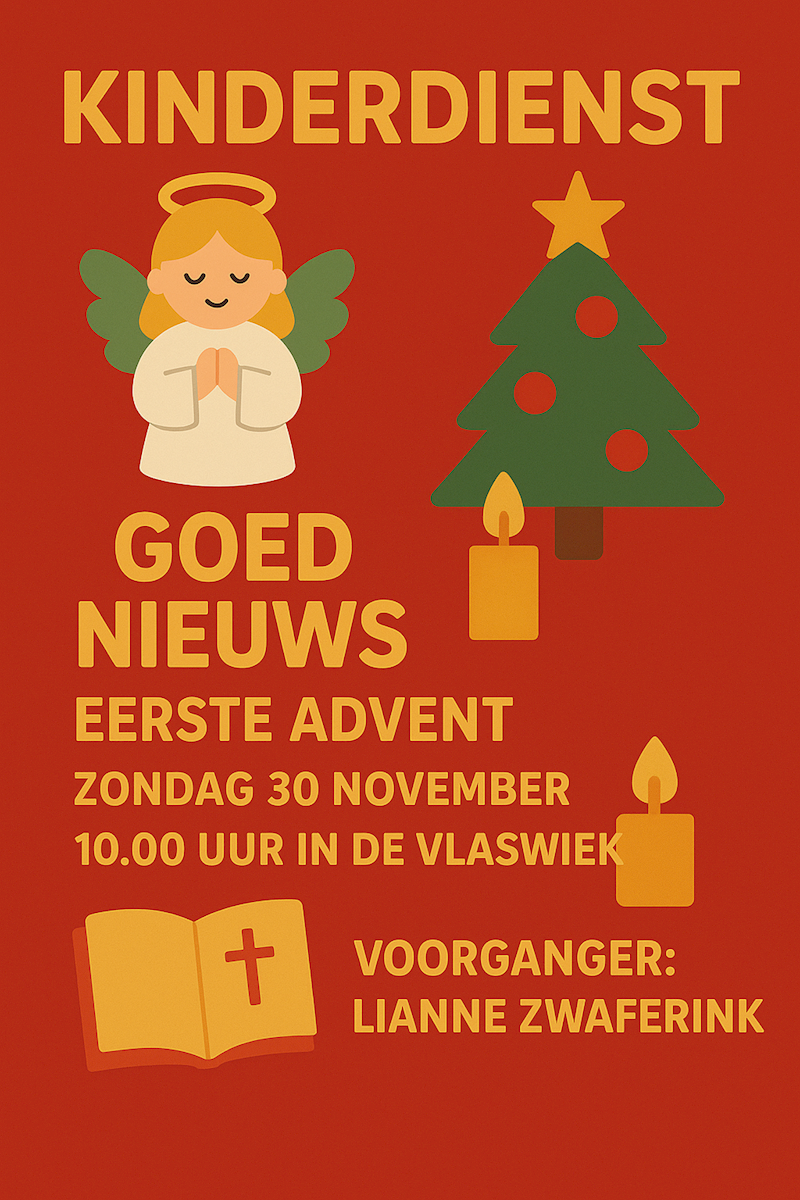 ![]() Zondag 30 november (Eerste Advent) Kinderdienst Vlaswiekkerk Tijd: 10.00 Voorganger: Mevr. L. Zwaferink Organist: Harold Gossen Tijd: 19.00 Vlaswiekkerk Zangdienst Organist: Gerrit Lennips Onder het kopje Kerkdiensten kun je verder vooruit kijken naar diensten tot en met juni 2026 |