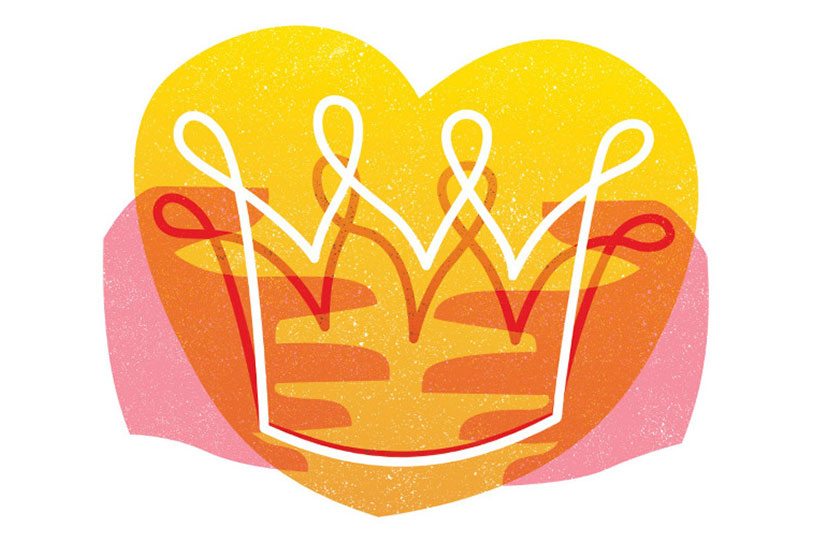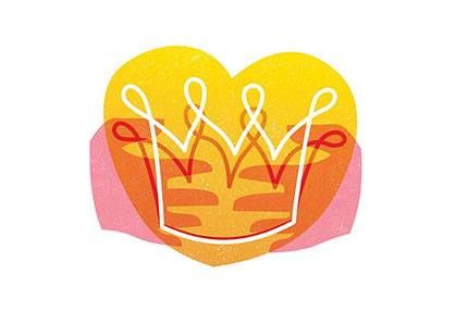 *Het gouden hart en de kroon worden tegelijk vastgehouden. Waar hart en handen bij elkaar komen, gebeurt er iets.